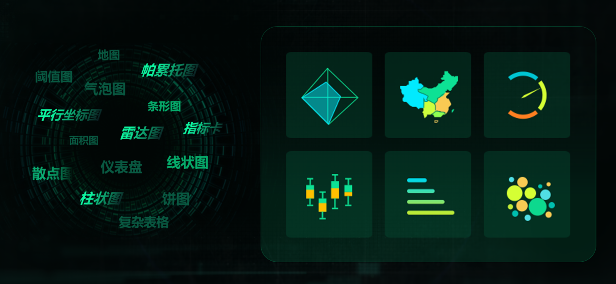 支持敏捷看板,即席報(bào)告,幻燈片等多種分析方式,使數(shù)據(jù)分析更貼近用戶應(yīng)用的場景。并且提供多種可視化組件:表格、常規(guī)統(tǒng)計(jì)圖、html5統(tǒng)計(jì)圖、地圖等。