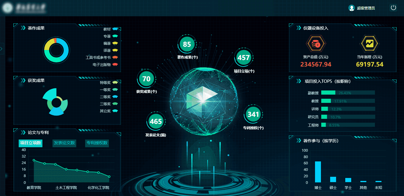 為了展現學校的實力,分別從學校概況、師資隊伍、教學資源、科學研究、學生發(fā)展、就業(yè)情況和日常運營的角度來展示。學校概況包括辦學條件、師生情況、學科專業(yè)和師資力量,再通過榮譽稱號、教師編制類別、教職工人數、研究生導師數、高層次人才、職稱分布、最高學位分布等展示師資隊伍,用教學用房面積、教學經費投入、教學科研儀器、圖書資料等來表現教學資源,用著作成果、獲獎成果、論文與專利等展現科學研究。